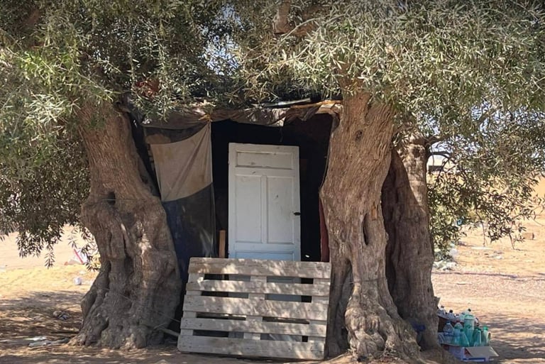 Je n'ai pas osé m'en approcher outre mesure de peur de déranger la personne qui y avait trouvé refuge. Car, manifestement, un homme avait élu domicile au coeur de cet olivier millénaire.