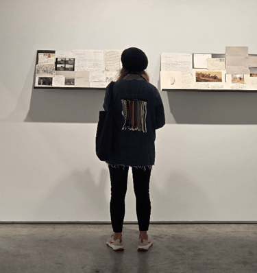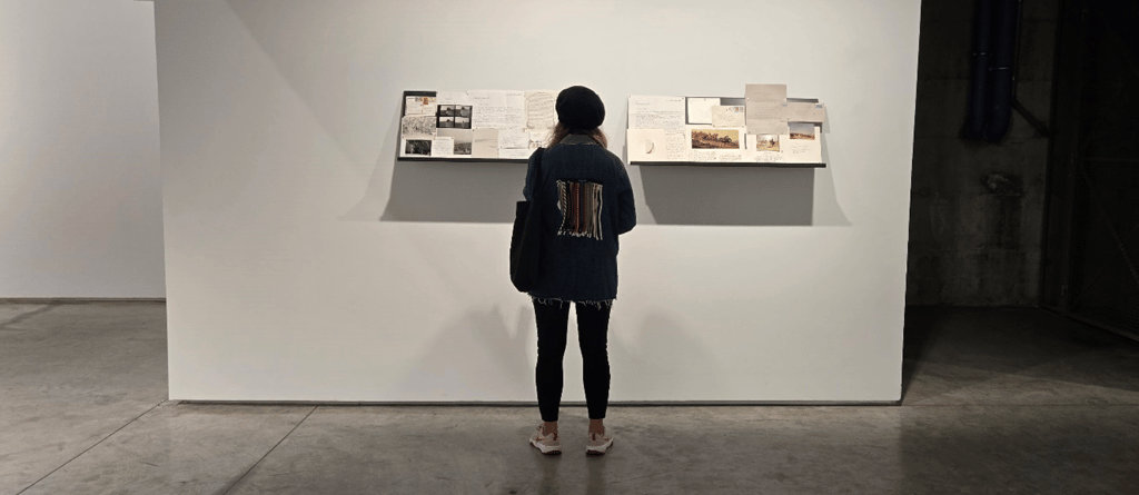 Un peu plus loin, une installation étrange composée de bidons et de bouteilles m'a captivée. J'étais curieuse de savoir de quel matériau ils étaient faits, et, intriguée, je me suis approchée de plus en plus, jusqu'à ce qu'on m'en empêche, m'invitant à demander des informations. C'est ainsi que j'ai découvert que l'artiste avait utilisé du verre soufflé pour créer des œuvres imitant l'usure du plastique. Des bouteilles et des bidons semblaient se dissoudre dans un océan de pièces éparpillées dans la salle.
