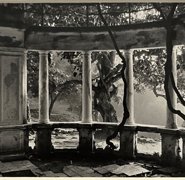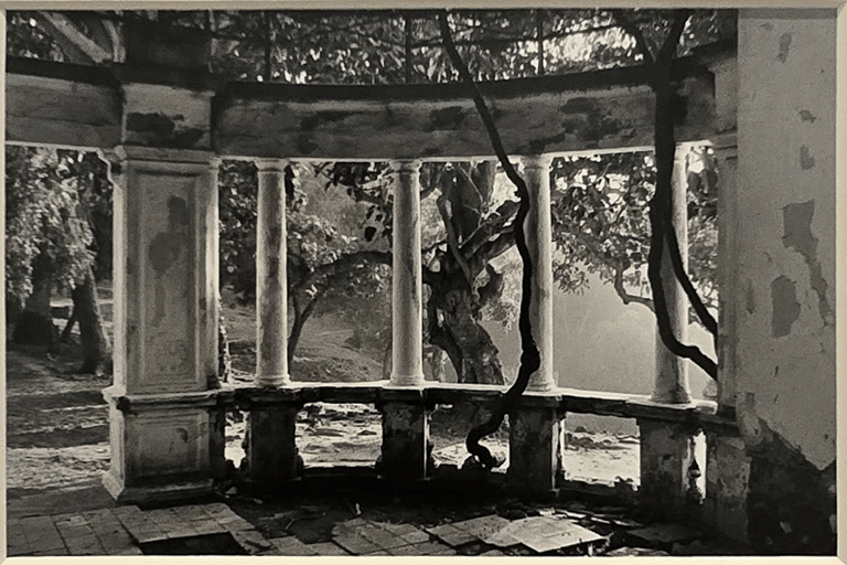 Le bâti, parfois englouti par la végétation, se fait discret, laissant percevoir la nature reprenant ses droits. Architecture et paysage dialoguent dans un équilibre fragile, entre création humaine et force organique. Quelques images renvoient aux vitrines d’Hermès imaginées par Leïla Menchari, rappelant combien ce lieu intime, à la fois réel et mythique, a nourri l’inspiration artistique.